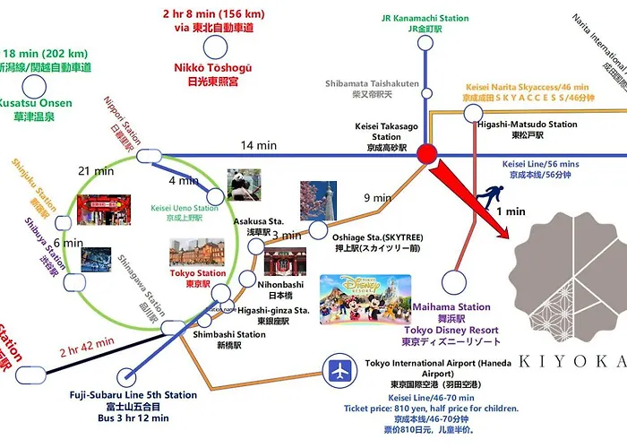 Welche berühmten Attraktionen findet man in der Nähe vom Hotel Asakusa,Ginza,Ueno,Skytree,Stn&Conv 1Min ,Family Suite,45 Mins To Airport,Kiyoka Villa 清禾?